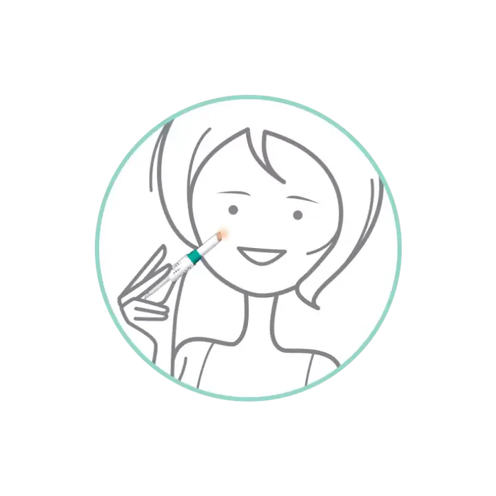 - Appliquez la lotion localement et laissez sécher quelques secondes, puis appliquez le stick sur l’imperfection et estompez délicatement.
